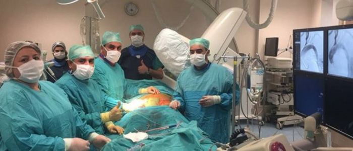 Hibrid müalicənin dünyanın qabaqcıl ölkələrində son 10 ildə tətbiq edildiyini deyən baş həkim qeyd edib ki, bu əməliyyat ölkəmizdə ilk dəfə tətbiq edilir: “Ciddi riskli aorta disseksiyası və aorta anevrizması xəstələri üçün ümid yeri, həyat xilasedici bir alternativ təşkil edən hibrid müalicə dünyanın ən qabaqcıl ölkələrində son 10 ildə tətbiq edilməyə başlayıb. Bizim bu müalicə metodunu ilk dəfə tətbiq edərək əməliyyat etdiyimiz xəstə 39 yaşında kişi idi. Xəstədə enən aortanın disseksiyası və anevrizması olduğu üçün klassik açıq cərrahiyyənin tətbiqi yüksək risk daşıyırdı. Buna görə də, xəstəni hibrid üsulla müalicə etməyə qərar verdik. Yuxu və körpücükaltı arteriyaları arasında şunt əməliyyatı icra olunduqdan sonra aortanın laylanmış və anevrizmalaşmış seqmentinə qapalı yolla stent-qreft yerləşdirildi (TEVAR)”.