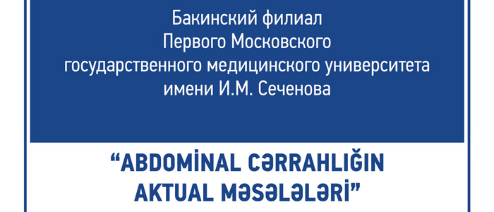 Sizi 24 və 25 may 2019-cu il tarixində Rusiya Səhiyyə Nazirliyinin İ.M.Seçenov adına Birinci Moskva Dövlət Tibb Universitetinin Bakı filialı tərəfindən keçiriləcək “Abdominal cərrahlığın aktual məsələləri” mövzusunda elmi - praktiki konfransında iştirak etməyə dəvət edirik. Кonfrans Azərbaycan Respublikası Səhiyyə Nazirliyi tərəfindən akkreditə olunub.