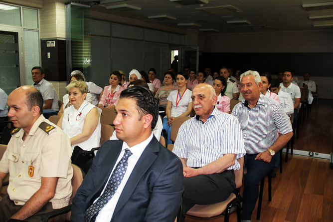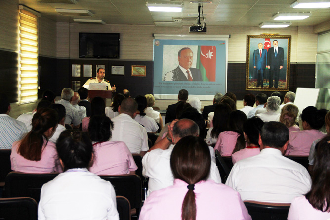 Tədbirdə çıxış edən Səbayil rayonu üzrə Mülki Müdafiə şöbəsinin rəisi polkovnik-leytenant Nazir Əkbərov fövqəladə vəziyyətlərdən heç kimin sığortalanmadığını vurğulamış və buna görədə Fövqəladə Hallar Nazirliyinin əsas məqsədi bu tədbirlərin baş verməməsi üçün profilaktik önləyici tədbirlərin hazırlanması və həyata keçirilməsi olduğunu nəzərə çatdırmışdır. Xəstəxanın mülki müdafiə ilə bağlı işi yüksək səviyyədə təşkil etdiyini vurğulayaraq, hər bir müəssisənin bu istiqamətdə məsuliyyətli şəkildə fəaliyyət göstərməsini xüsusilə qeyd etmişdir. Tədbirin sonunda fövqəladə hallar zamanı görülən işləri əks etdirən videoçarxlar nümayiş olundu.