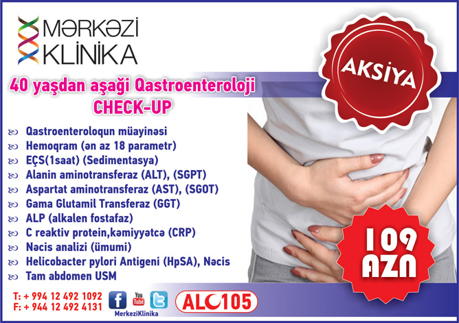 Aprel ayının sonunadək MK Ambulatoriyada endirimli 40 yaşından aşağı Qastroenteroloji Check-Up cəmi 109 AZN