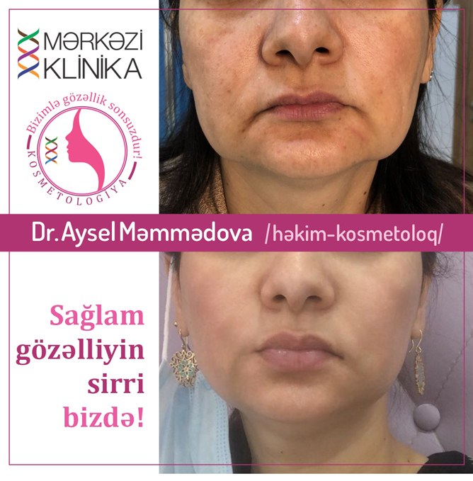 Kontur plastika. ağız, burun ətrafına və yanağa lazımi nöqtələrdən və öz texnikamızla müəyyən qədər toxunuşlar edərək üzün liftinginə nail olduq, nəticədə dodaqlara heç bir prosedur olmadığı halda dodaqlar da öz yerini aldı, sallanma aradan qalxdı.